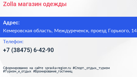 Zolla, магазин одежды по адресу Кемеровская область, Междуреченск, проезд Горького, 14 в дальнейшем Организация, размещена в следующих категориях: