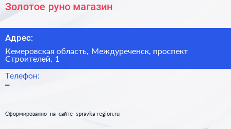 Золотое руно, магазин по адресу Кемеровская область, Междуреченск, проспект Строителей, 1 в дальнейшем Организация, размещена в следующих категориях: