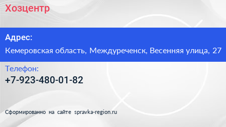 Хозцентр по адресу Кемеровская область, Междуреченск, Весенняя улица, 27 в дальнейшем Организация, размещена в следующих категориях:
