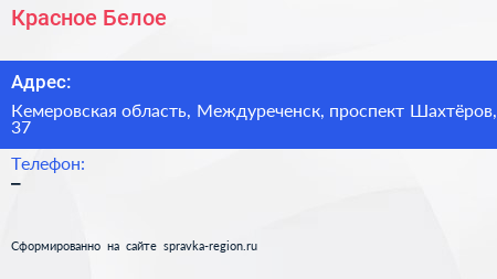 Красное&Белое по адресу Кемеровская область, Междуреченск, проспект Шахтёров, 37 в дальнейшем Организация, размещена в следующих категориях: