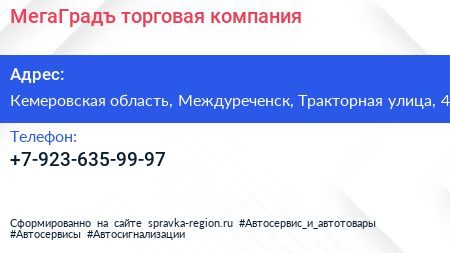МегаГрадъ, торговая компания по адресу Кемеровская область, Междуреченск, Тракторная улица, 4 в дальнейшем Организация, размещена в следующих категориях: