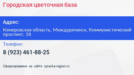 Городская, цветочная база по адресу Кемеровская область, Междуреченск, Коммунистический проспект, 18 в дальнейшем Организация, размещена в следующих категориях: