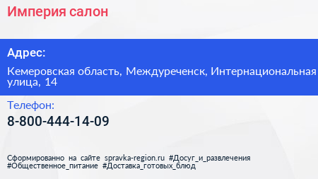 Империя, салон по адресу Кемеровская область, Междуреченск, Интернациональная улица, 14 в дальнейшем Организация, размещена в следующих категориях: