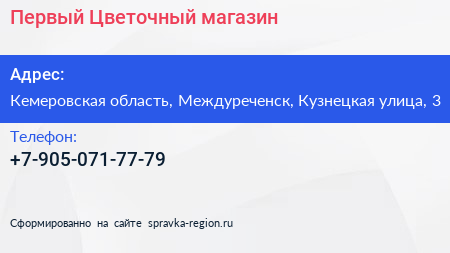 Первый Цветочный, магазин по адресу Кемеровская область, Междуреченск, Кузнецкая улица, 3 в дальнейшем Организация, размещена в следующих категориях: