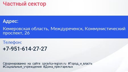 Частный сектор по адресу Кемеровская область, Междуреченск, Коммунистический проспект, 26 в дальнейшем Организация, размещена в следующих категориях: