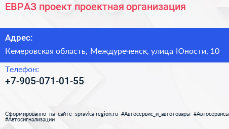 ЕВРАЗ проект, проектная организация по адресу Кемеровская область, Междуреченск, улица Юности, 10 в дальнейшем Организация, размещена в следующих категориях: