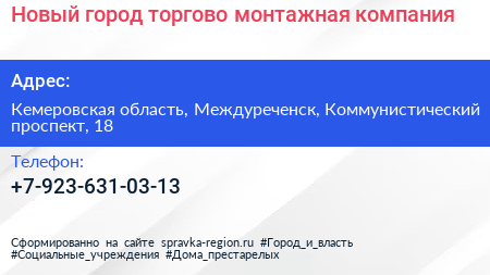 Новый город, торгово-монтажная компания по адресу Кемеровская область, Междуреченск, Коммунистический проспект, 18 в дальнейшем Организация, размещена в следующих категориях: