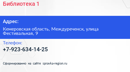 Библиотека №1 по адресу Кемеровская область, Междуреченск, улица Фестивальная, 9 в дальнейшем Организация, размещена в следующих категориях: