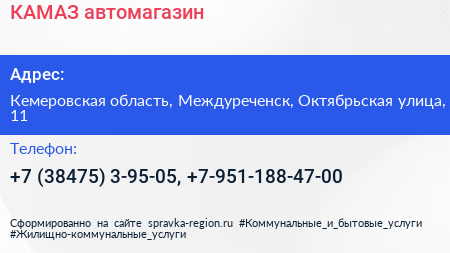 КАМАЗ, автомагазин по адресу Кемеровская область, Междуреченск, Октябрьская улица, 11 в дальнейшем Организация, размещена в следующих категориях:
