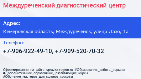 Междуреченский диагностический центр по адресу Кемеровская область, Междуреченск, улица Лазо, 1а в дальнейшем Организация, размещена в следующих категориях: