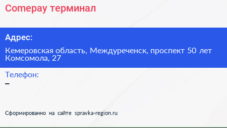 Comepay, терминал по адресу Кемеровская область, Междуреченск, проспект 50 лет Комсомола, 27 в дальнейшем Организация, размещена в следующих категориях: