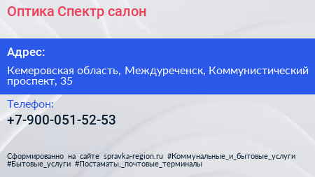 Оптика Спектр, салон по адресу Кемеровская область, Междуреченск, Коммунистический проспект, 35 в дальнейшем Организация, размещена в следующих категориях: