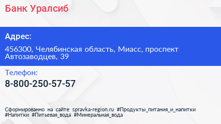 Банк Уралсиб по адресу 456300, Челябинская область, Миасс, проспект Автозаводцев, 39 в дальнейшем Организация, размещена в следующих категориях: