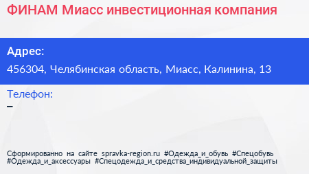 ФИНАМ-Миасс, инвестиционная компания по адресу 456304, Челябинская область, Миасс, Калинина, 13 в дальнейшем Организация, размещена в следующих категориях: