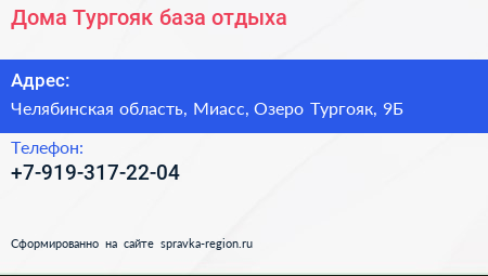 Дома Тургояк, база отдыха по адресу Челябинская область, Миасс, Озеро Тургояк, 9Б в дальнейшем Организация, размещена в следующих категориях: