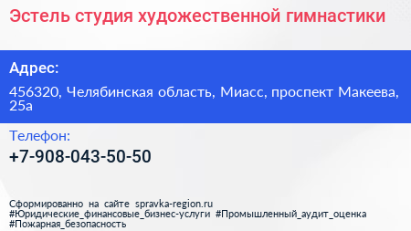 Эстель, студия художественной гимнастики по адресу 456320, Челябинская область, Миасс, проспект Макеева, 25а в дальнейшем Организация, размещена в следующих категориях: