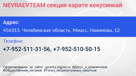 NEVRAEVTEAM, секция карате кекусинкай по адресу 456313, Челябинская область, Миасс, Нахимова, 12 в дальнейшем Организация, размещена в следующих категориях: