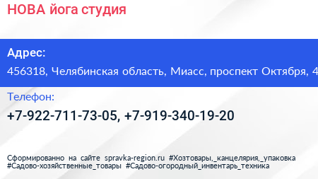 НОВА, йога-студия по адресу 456318, Челябинская область, Миасс, проспект Октября, 4 в дальнейшем Организация, размещена в следующих категориях: