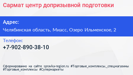 Сармат, центр допризывной подготовки по адресу Челябинская область, Миасс, Озеро Ильменское, 2 в дальнейшем Организация, размещена в следующих категориях: