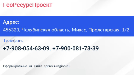 ГеоРесурсПроект по адресу 456323, Челябинская область, Миасс, Пролетарская, 1/2 в дальнейшем Организация, размещена в следующих категориях: