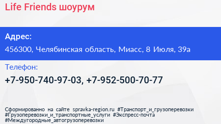 Life Friends, шоурум по адресу 456300, Челябинская область, Миасс, 8 Июля, 39а в дальнейшем Организация, размещена в следующих категориях: