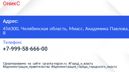 ОникС по адресу 456300, Челябинская область, Миасс, Академика Павлова, 8 в дальнейшем Организация, размещена в следующих категориях:
