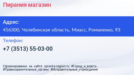 Пирания, магазин по адресу 456300, Челябинская область, Миасс, Романенко, 93 в дальнейшем Организация, размещена в следующих категориях: