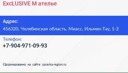 ExcLUSIVE & M, ателье по адресу 456320, Челябинская область, Миасс, Ильмен-Тау, 1-2 в дальнейшем Организация, размещена в следующих категориях: