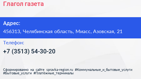 Глагол, газета по адресу 456313, Челябинская область, Миасс, Азовская, 21 в дальнейшем Организация, размещена в следующих категориях: