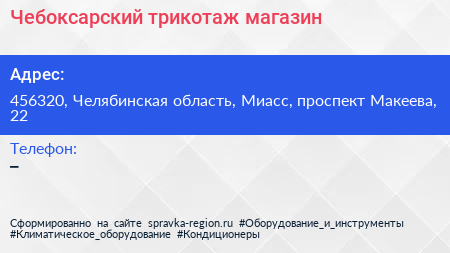 Чебоксарский трикотаж, магазин по адресу 456320, Челябинская область, Миасс, проспект Макеева, 22 в дальнейшем Организация, размещена в следующих категориях: