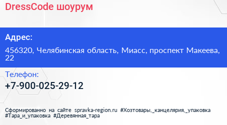 DressCode, шоурум по адресу 456320, Челябинская область, Миасс, проспект Макеева, 22 в дальнейшем Организация, размещена в следующих категориях: