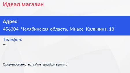 Адрес: Челябинская область, Миасс, Калинина, 13