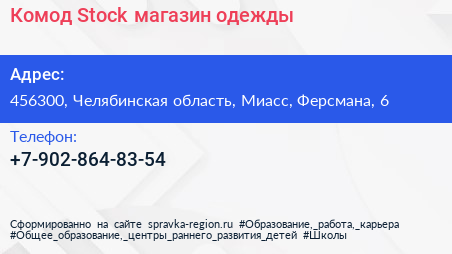 Комод Stock, магазин одежды по адресу 456300, Челябинская область, Миасс, Ферсмана, 6 в дальнейшем Организация, размещена в следующих категориях: