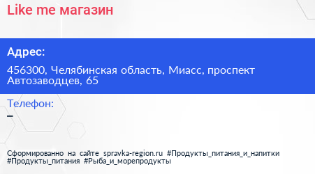 Like me, магазин по адресу 456300, Челябинская область, Миасс, проспект Автозаводцев, 65 в дальнейшем Организация, размещена в следующих категориях: