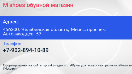M-shoes, обувной магазин по адресу 456300, Челябинская область, Миасс, проспект Автозаводцев, 57 в дальнейшем Организация, размещена в следующих категориях: