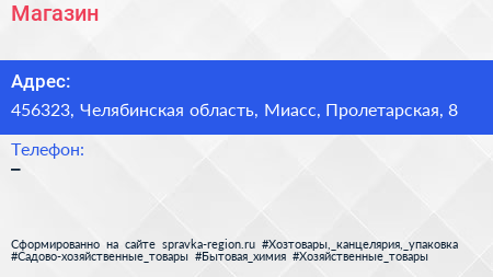Магазин по адресу 456323, Челябинская область, Миасс, Пролетарская, 8 в дальнейшем Организация, размещена в следующих категориях:
