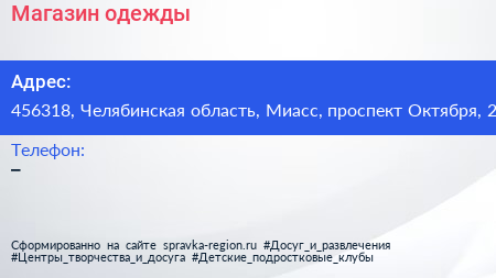 Магазин одежды по адресу 456318, Челябинская область, Миасс, проспект Октября, 2 в дальнейшем Организация, размещена в следующих категориях: