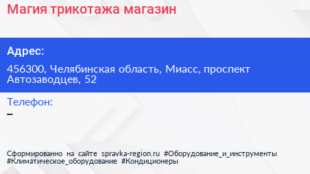 Магия трикотажа, магазин по адресу 456300, Челябинская область, Миасс, проспект Автозаводцев, 52 в дальнейшем Организация, размещена в следующих категориях: