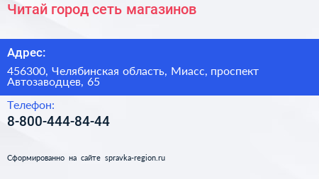 Читай-город, сеть магазинов по адресу 456300, Челябинская область, Миасс, проспект Автозаводцев, 65 в дальнейшем Организация, размещена в следующих категориях: