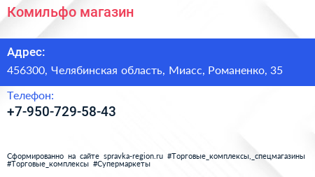 Комильфо, магазин по адресу 456300, Челябинская область, Миасс, Романенко, 35 в дальнейшем Организация, размещена в следующих категориях: