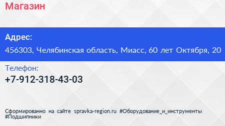 Магазин по адресу 456303, Челябинская область, Миасс, 60 лет Октября, 20 в дальнейшем Организация, размещена в следующих категориях: