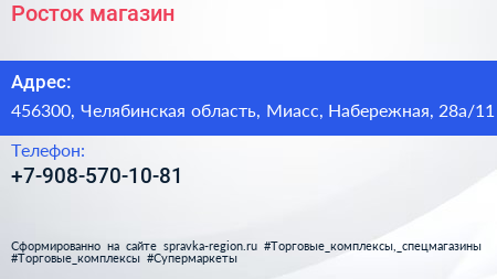 Росток, магазин по адресу 456300, Челябинская область, Миасс, Набережная, 28а/11 в дальнейшем Организация, размещена в следующих категориях: