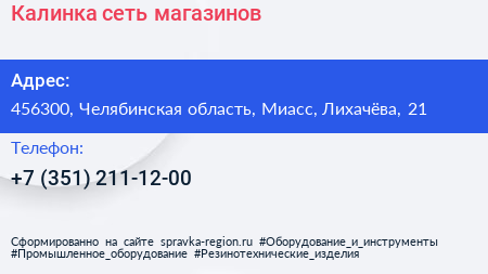 Калинка, сеть магазинов по адресу 456300, Челябинская область, Миасс, Лихачёва, 21 в дальнейшем Организация, размещена в следующих категориях: