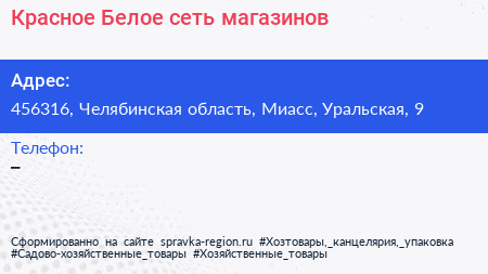 Красное & Белое, сеть магазинов по адресу 456316, Челябинская область, Миасс, Уральская, 9 в дальнейшем Организация, размещена в следующих категориях: