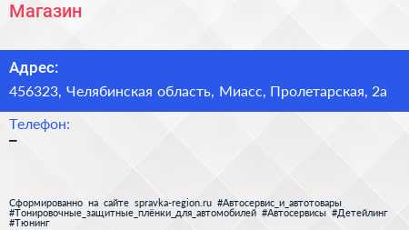 Магазин по адресу 456323, Челябинская область, Миасс, Пролетарская, 2а в дальнейшем Организация, размещена в следующих категориях: