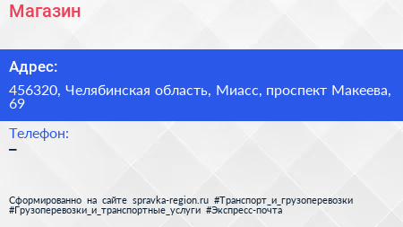 Магазин по адресу 456320, Челябинская область, Миасс, проспект Макеева, 69 в дальнейшем Организация, размещена в следующих категориях: