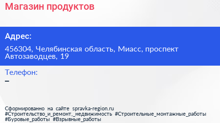Магазин продуктов по адресу 456304, Челябинская область, Миасс, проспект Автозаводцев, 19 в дальнейшем Организация, размещена в следующих категориях: