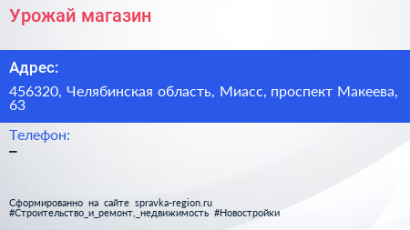 Урожай, магазин по адресу 456320, Челябинская область, Миасс, проспект Макеева, 63 в дальнейшем Организация, размещена в следующих категориях: