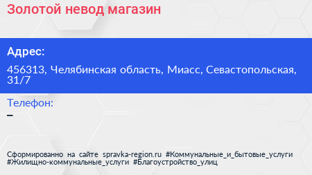 Золотой невод, магазин по адресу 456313, Челябинская область, Миасс, Севастопольская, 31/7 в дальнейшем Организация, размещена в следующих категориях: