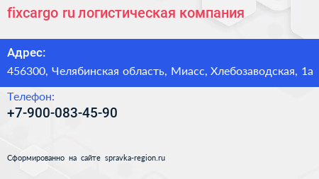 fixcargo.ru, логистическая компания по адресу 456300, Челябинская область, Миасс, Хлебозаводская, 1а в дальнейшем Организация, размещена в следующих категориях: